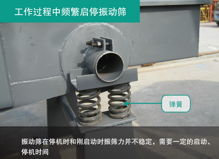 如果在篩分分級過程中反復(fù)停啟篩機(jī),勢必會造成彈簧在短時間內(nèi)反復(fù)承受高強度的振篩力,長期的這種頻繁重載起停篩機(jī)是導(dǎo)致彈簧斷損的一個主要原因。